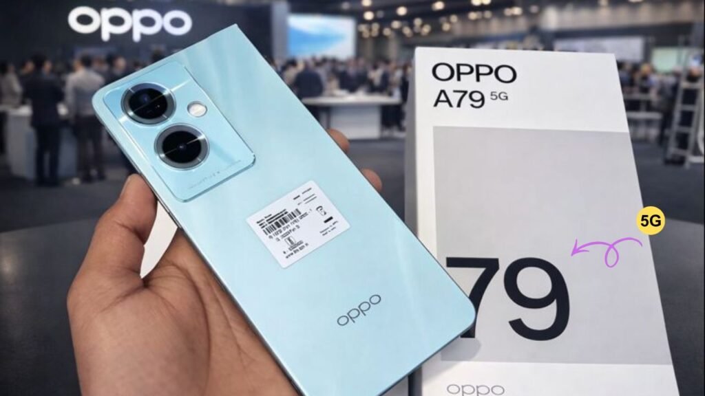 The Oppo A79 5G is a smart choice for people who want a budget 5G phone. It mixes a modern